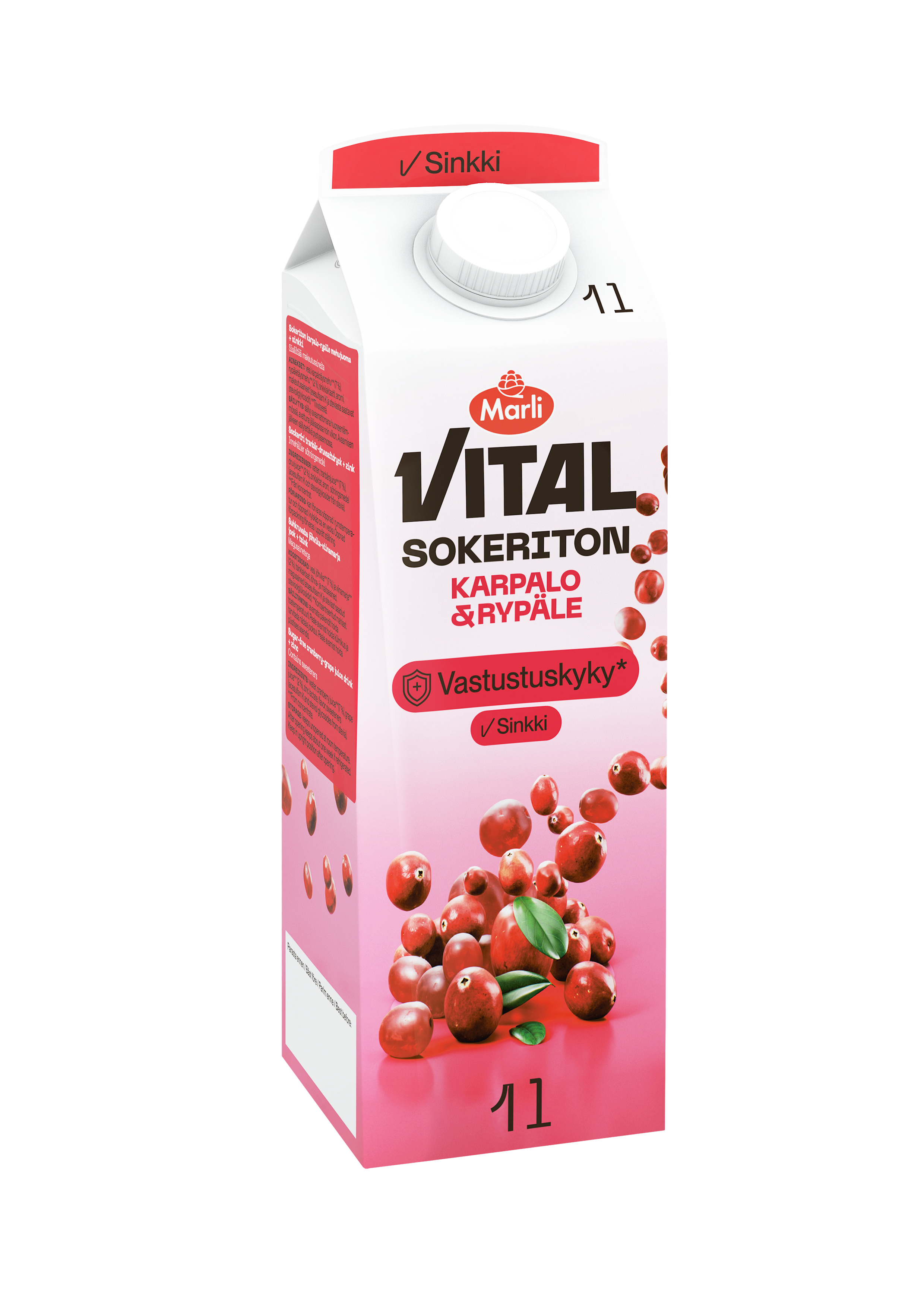 vesi, karpalotäysmehu* (7 %), rypäletäysmehu* (2 %), sinkkilaktaatti, aromi, makeutusaineet (asesulfaami K ja steviasta saatavat stevioliglykosidit). *Tiivisteestä
