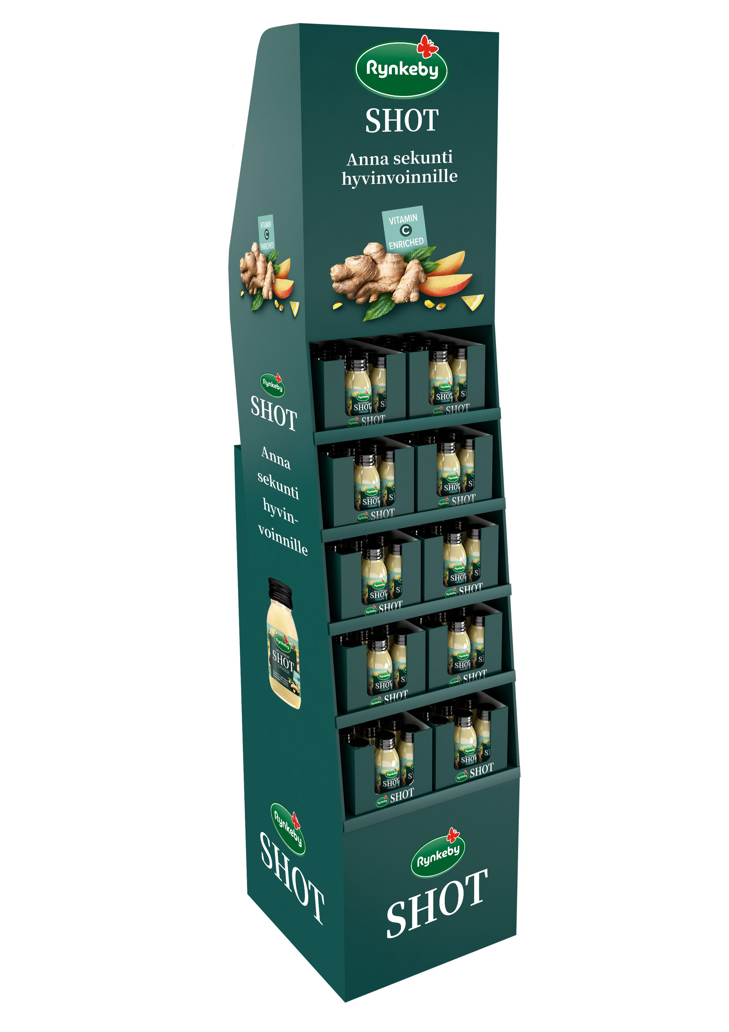 Pahvidisplayssa on yhteensä 120 shottia 5 kerroksessa. Kuluttajapakkauksen EAN-koodi: 5705010081685. C-vitamiini vahvistaa vastustuskykyä. Huolehdi tasapainoisesta ja monipuolisesta ruokavaliosta sekä terveistä elämäntavoista.