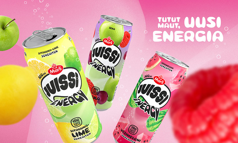 Marli Juissi on nyt myös Energy. Löydät kaupoista aivan uudet Marli Juissi energiajuomat, joissa on korkea 180 mg:n kofeiinipitoisuus. Pirteästi kuplivien juomien maku on todella raikas ja tutun hedelmäinen.